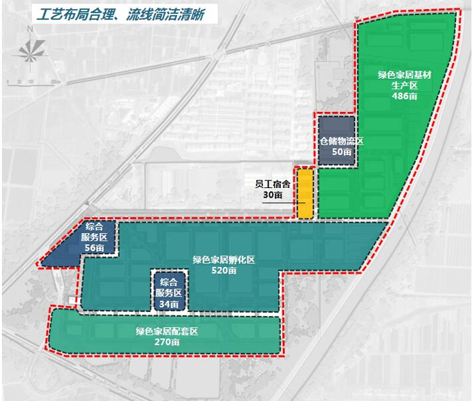 园区以“家居”“绿色”“生态”“健康”“智能”为主题,依托当地产业基础,实现“聚集、整合、扩大、提升”的建设目标。2018年启动一期工程建设项目,建设区域主要包括原木加工区、集成材加工区、高端板材加工区、高端饰面板加工区、木制品加工区、非木制品配套加工区、干燥区、创新家居孵化区、综合服务区。